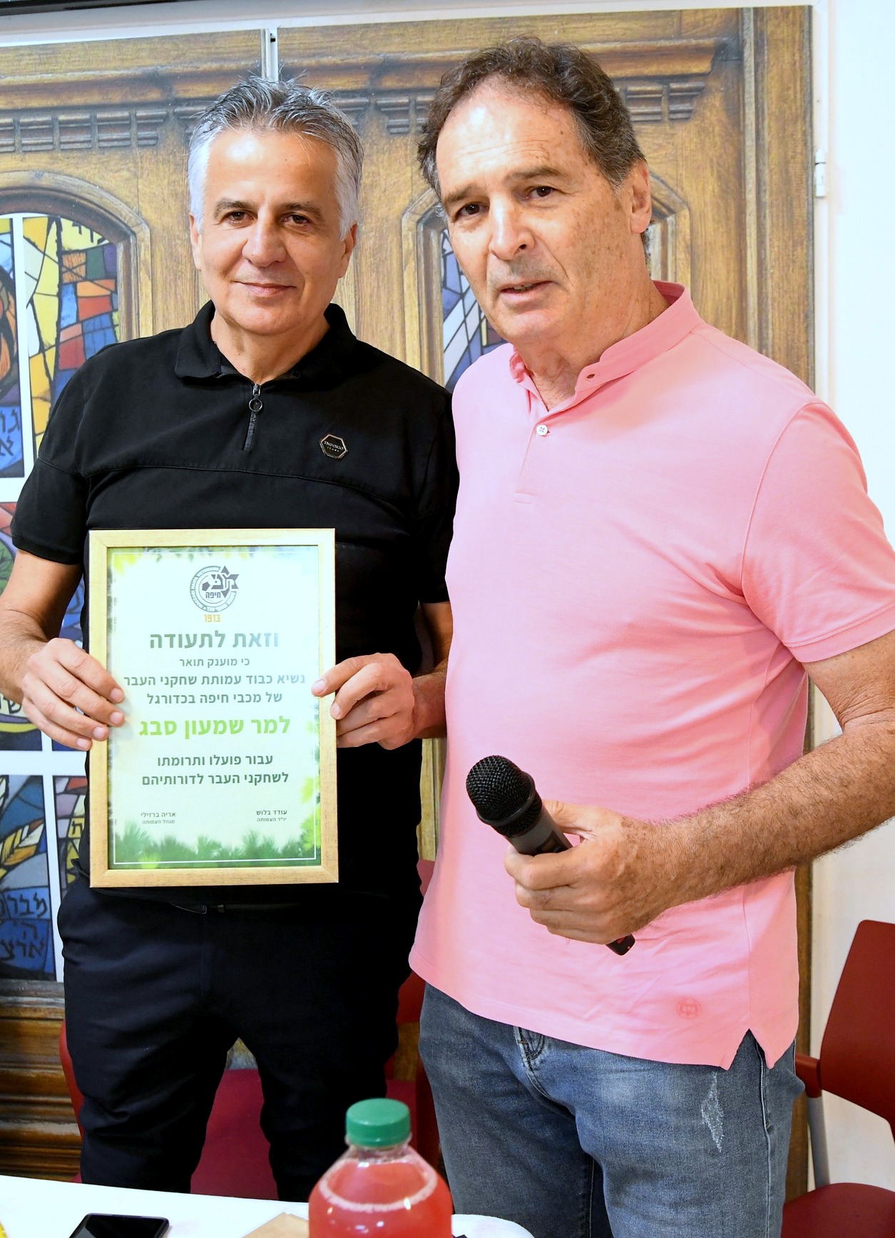 אגדות ותיקי מכבי חיפה בכדורגל חגגו בהרמת כוסית לראש השנה בעמותת "יד עזר לחבר" בחיפה • במהלך האירוע הופתע שמעון סבג ומונה לנשיא כבוד של ותיקי העבר של מכבי חיפה