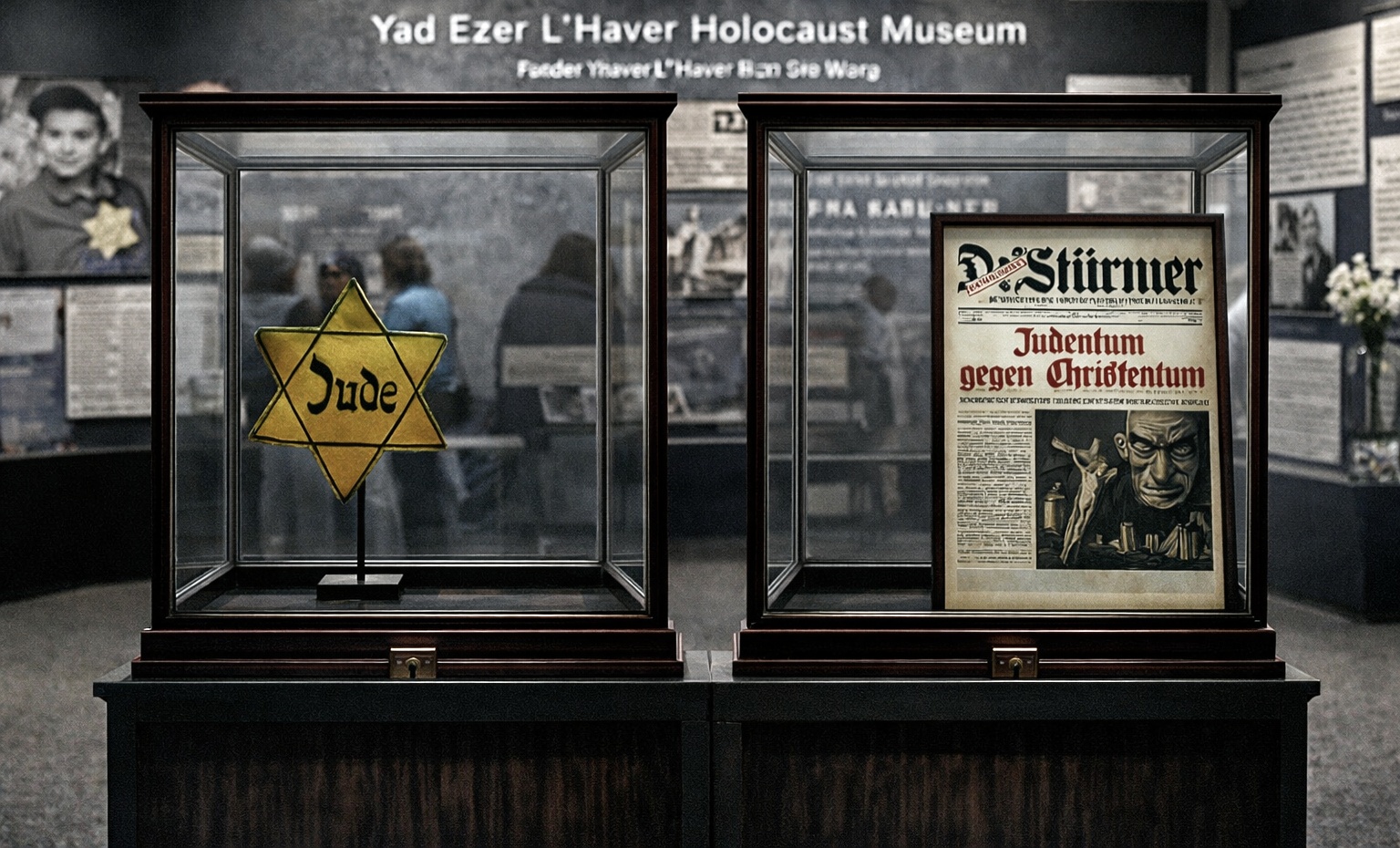 בתוך כך, יש לציין כי באולם האירוע תוצג תערוכה ייחודית ויוצאת דופן של חלק מפריטים מקוריים ונדירים מתקופת השואה שהצילה משלחת החירום של עמותת "יד עזר לחבר" בהובלתו של מייסד ומנכ"ל העמותה שמעון סבג לפני כחודש ימים ועצירתם ממכירתם הפומבית בגרמניה. בין הפריטים, טלאי צהוב, תמונות, מסמכים, דוקומנטים שונים וחפצים אישיים של יהודים שנרצחו ונספו בשואה ע"י הצורר הנאצי שהיו שייכים לאסירים יהודים ששהו במחנות הריכוז ומחנות ההשמדה בתקופת השואה בפולין. לאחרונה, הוצגו הפריטים הנ"ל גם במשכן הכנסת בירושלים. נוסיף כי כל מאות הפריטים הנ"ל יוצגו בקרוב בתערוכת הקבע ב"מוזיאון השואה" של העמותה בחיפה אותו היא חנכה לפני כעשור שנים.