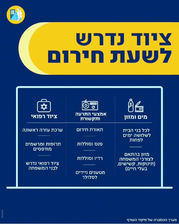 להעניק סיוע במזון, פינוי רפואי, ליווי ותמיכה, ללא כל עלות.כהרגלנו, אנחנו נערכים לכל תרחיש כדי לוודא שאף אדם לא יישאר מאחור בשעת חירום. האחריות שלנו היא להיות שם עבור שורדי השואה, הקשישים והאוכלוסיות החלשות, עם מענה מהיר, מקצועי ואנושי, מסביב לשעון וללא כל עלות. ברצוני לציין כי ההיערכות לחירום היא חלק בלתי נפרד מפעילות העמותה וכי גם בתקופות שיגרה ממשיכים צוות עובדי ומתנדבי העמותה לפעול סביב השעון למען ביטחון האזרחים ואוכלוסיות הזקוקות לסיוע".
